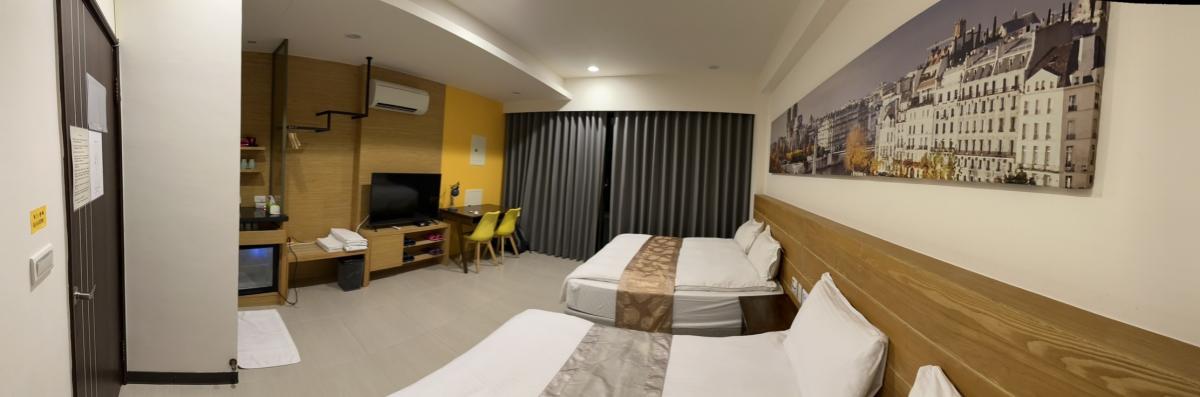 - 客房設備: 電視,第四台,陽台,窗戶,冷氣機,盥洗用品,衛浴設備,浴巾,沐浴乳,洗面乳,熱水瓶,礦泉水,休閒桌椅,客廳,電話,衣櫃